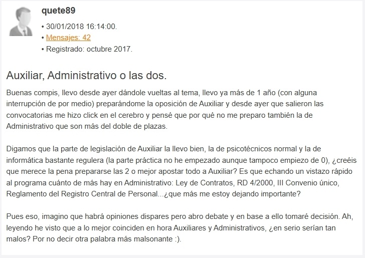 Aparte del cansancio, es muy común que, tras mucho tiempo estudiando, te entren dudas sobre si has elegido bien la oposición. Esto suele pasar al comparar opciones parecidas, como Auxiliar y Administrativo del Estado.